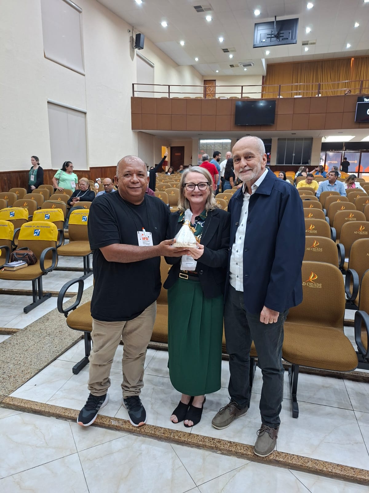 Durante a conferência, o Pr. Cledemilson Félix teve a alegria de presentear a palestrante e discipuladora Ilaene Schuler com uma lembrança simbólica da cidade de Macau/RN — uma pirâmide de sal, representando não apenas a identidade local, mas também o chamado de Jesus para que sejamos “sal da terra” (Mateus 5:13).